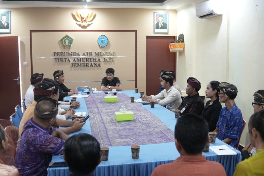 SINDOMAS, Jembrana – Bupati Jembrana I Made Kembang Hartawan melakukan kunjungan kerja ke Perusahaan Daerah Air Minum (PDAM) Tirta Amertha Jati, Kamis (17/4/2025). Kunker tersebut sebagai bentuk komitmen pemerintah daerah dalam memastikan kualitas pelayanan air bersih bagi masyarakat terus meningkat.