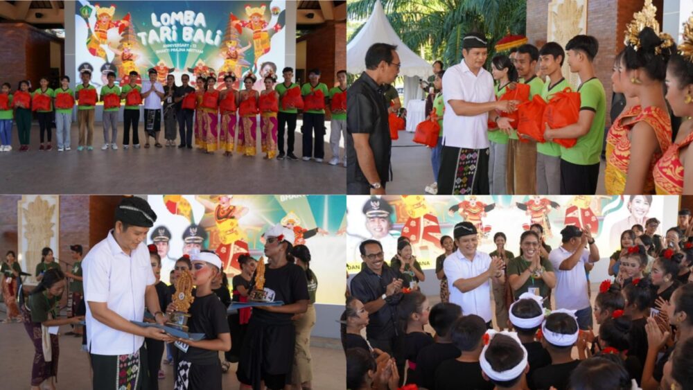 SINDOMAS, Jembrana – Bupati Jembrana I Made Kembang Hartawan menyerahkan hadiah pemenang Lomba Tari Bali se-Kabupaten yang diikuti 125 peserta, sekaligus juga memberikan bantuan sosial kepada anak-anak disablitias Sanggar Pradnya Swari. Lomba tari tersebut digelar dalam rangka memperingati Hari Ulang Tahun ke-13 Lembaga Kursus Pelatihan (LKP) Tari Bali Pradnya Swari, bertempat di Gedung Kesenian Ir. Soekarno, (29/5/2025).