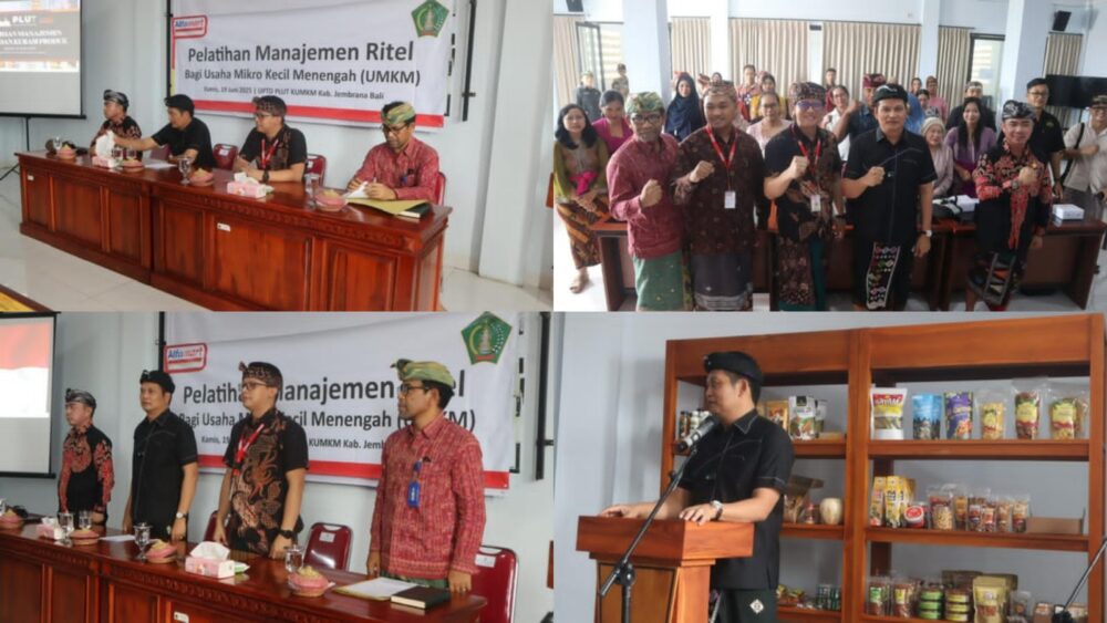 SINDOMAS, Jembrana – Bupati Jembrana I Made Kembang Hartawan membuka Pelatihan Manajemen Retail dan Kurasi Produk, bertempat di Aula Gedung UPTD PLUT KUMKM Kabupaten Jembrana, Kamis (19/6/2025). Pelatihan tersebut melibatkan pelaku UMKM di Kabupaten Jembrana dengan narasumber dari Managemen PT. Sumber Alfaria Trijaya Tbk, serta dihadiri Pimpinan Cabang PT. Sumber Alfaria Trijaya Tbk, Ketua Komisi II DPRD Kabupaten Jembrana I Ketut Suastika dan Kepala Dinas Koperasi, UKM dan Perdagangan Kabupaten Jembrana I Komang Agus Adinata.