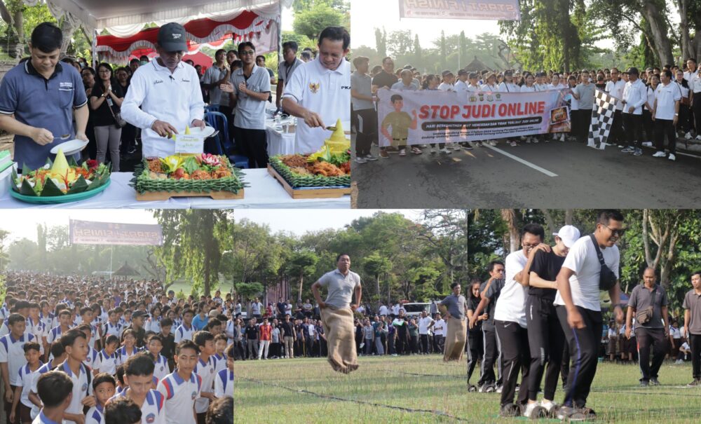 SINDOMAS, Jembrana – Korps Pegawai Republik Indonesia (KORPRI) Jembrana menggelar beragam kegiatan sederhana yang dilaksanakan secara gotong royong, diantaranya lomba olahraga dan lomba kreasi, bertempat di Taman Surapati Depan Kantor Bupati Jembrana, Jumat (15/11/2024). Kegiatan tersebut dalam rangka menyambut Hari Ulang Tahun (HUT) KOPRI ke-53 yang dirangkaikan dengan perayaan HUT Persatuan Guru Republik Indonesia (PGRI) ke-79.