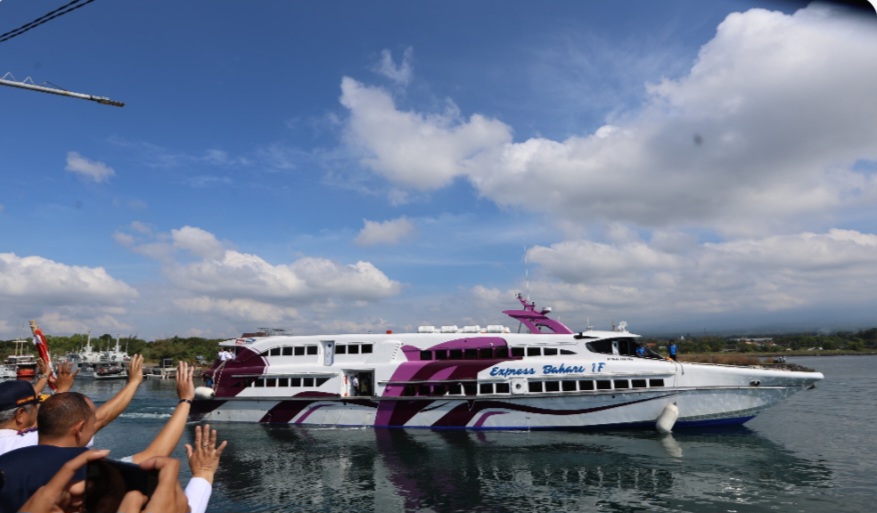 SINDOMAS, Banyuwangi – Kapal Cepat rute Banyuwangi – Denpasar mulai beroperasi layani penumpang dari Pantai Marina Boom, Banyuwangi menuju Pelabuhan Pulau Serangan, Denpasar, Bali, Rabu pagi (23/7/2025). Hal tersebut disampaikan Bupati Banyuwangi Ipuk Fiestiandani dalam dimulainya resmi beroprasi kapal cepat Banyuwangi-Denpasar.