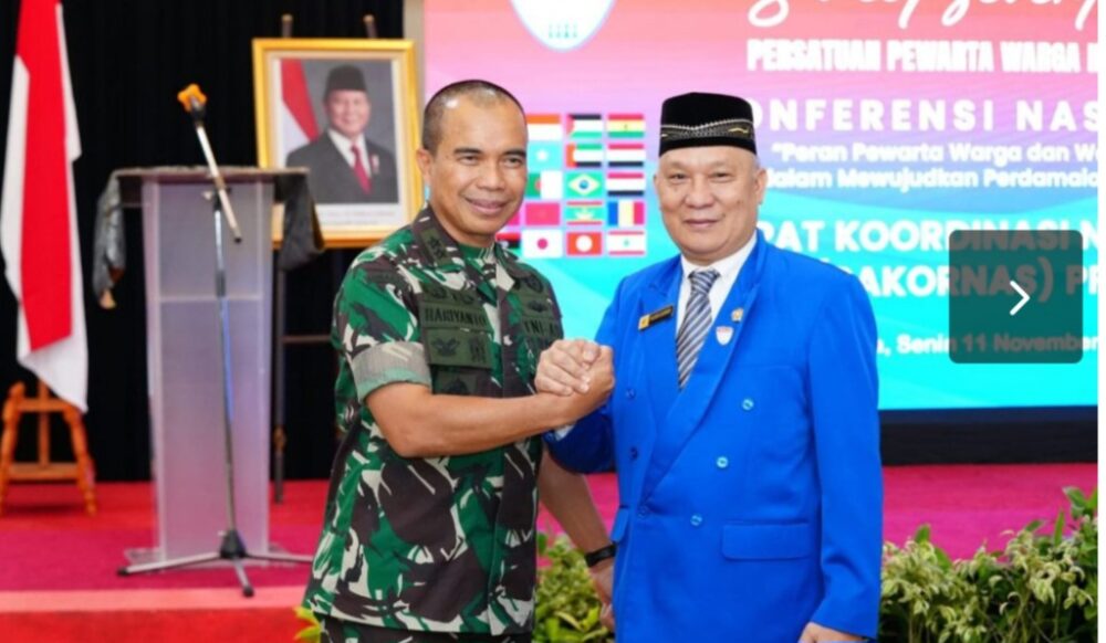 SINDOMAS, Jakarta –  Kepala Pusat Penerangan (Kapuspen) TNI Mayjen TNI Hariyanto mewakili Panglima TNI menghadiri acara Konferensi Nasional Pewarta Warga dan Warganet (Netizen). Acara tersebut diselenggarakan oleh Dewan Pengurus Nasional Persatuan Pewarta Warga Indonesia (PPWI), bertempat di Ballroom Menara Peninsula Hotel Jakarta, Jl. Letjen S. Parman, Slipi Jakarta Barat, Senin (11/11/2024).