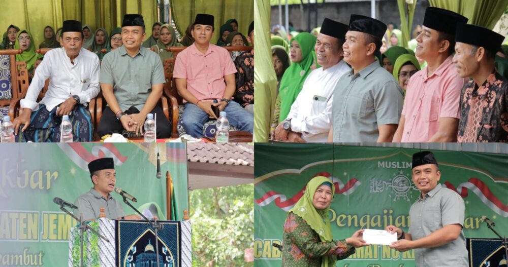 SINDOMAS, Jembrana – Wakil Bupati (Wabup) Jembrana I Gede Ngurah Patriana Krisna mewakili Bupati Jembrana menghadiri Pengajian Akbar yang diselenggarakan oleh Muslimat Nahdlatul Ulama (NU) Anak Cabang Jembrana di Masjid Tasdiqal Ummah, Banjar (dusun) Sabo, Desa Air Kuning, Jembrana, Minggu (23/2/2025). Kegiatan tersebut telah menjadi momen refleksi yang sangat berarti terkait sejarah panjang NU sebagai organisasi Islam terbesar di Indonesia.