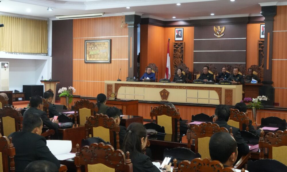 SINDOMAS, Jembrana – Bupati Jembrana I Nengah Tamba Menjelaskan Pendapat Akhir pada Rapat Paripurna I DPRD Kabupaten Jembrana Masa Persidangan I Tahun Sidang 2024/2025, bertempat di Ruang Sidang Utama DPRD Kabupaten Jembrana, Senin (13/1/ 2025). Rapat Paripurna tersebut menetapkan tiga Rancangan Peraturan Daerah (Ranperda) menjadi Peraturan Daerah (Perda).