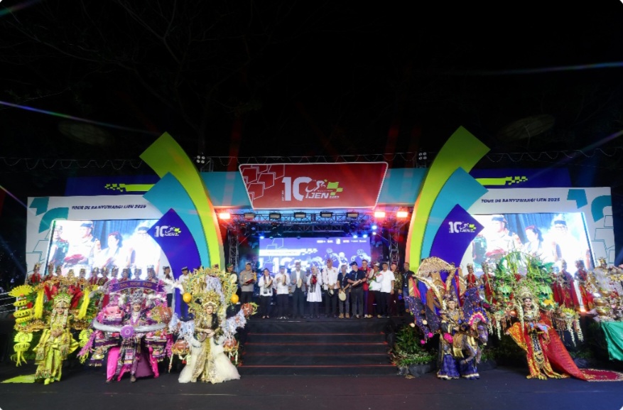 SINDOMAS, Banyuwangi – Bupati Banyuwangi Ipuk Fiestiandani resmi membuka Kompetisi Balap Sepeda Internasional, Tour de Banyuwangi Ijen (TdBI) 2025, Minggu (27/7/2025) malam. Sebanyak 99 pembalap dari 24 negara mulai menjalani Etape Pertama, Senin (28/7/2025) malam.