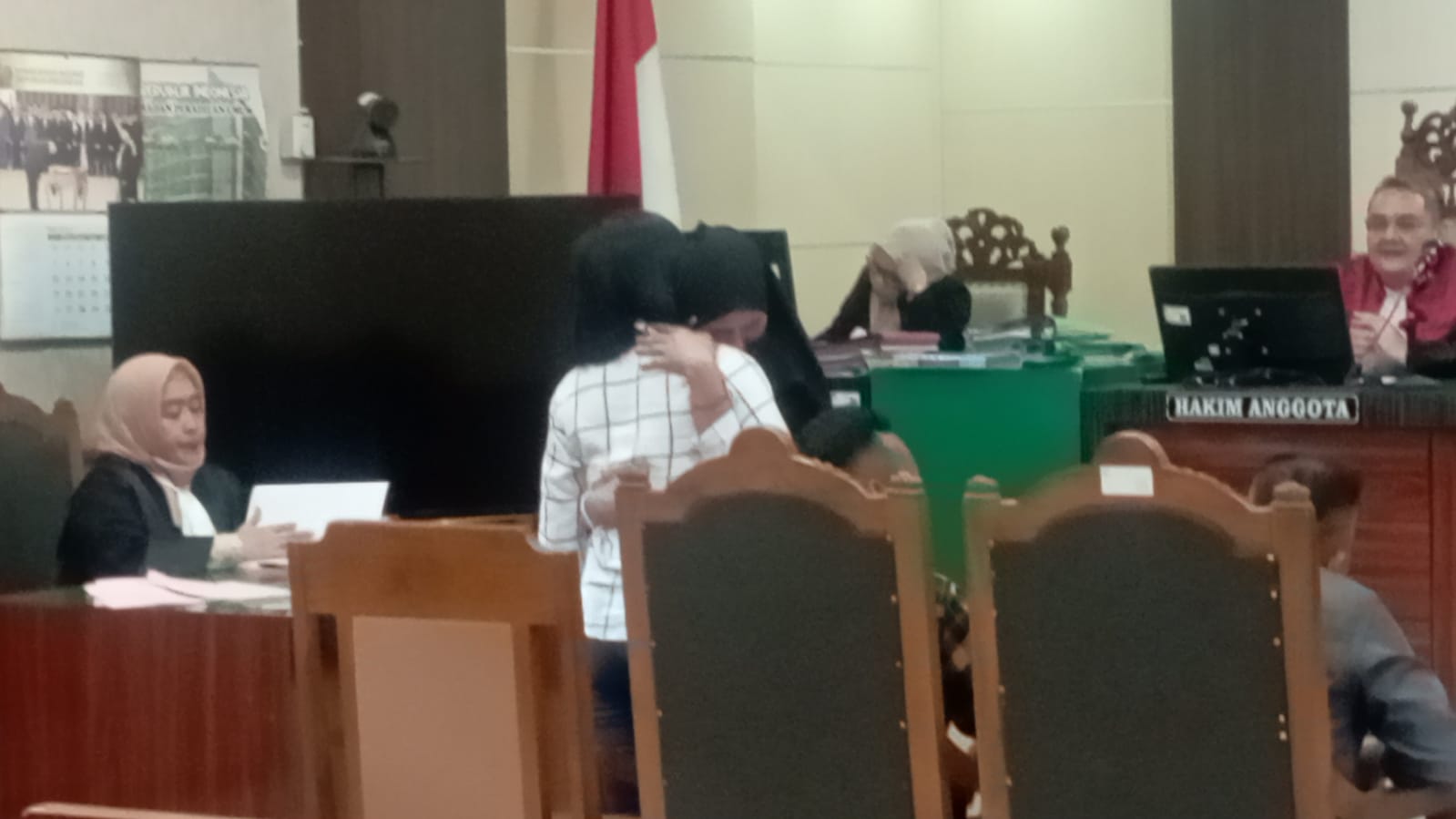 Saat itu juga ZZ,  (tersangka) meminta izin kepada hakim untuk memohon maaf dengan memeluk korban, ia tampak menangis dengan penuh penyesalan.