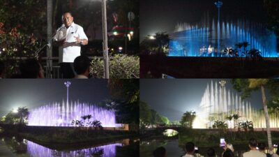SINDOMAS, Jembrana – Bupati Jembrana I Nengah Tamba bersama menyaksikan langsung Ujicoba Dancing Fountain atau…
