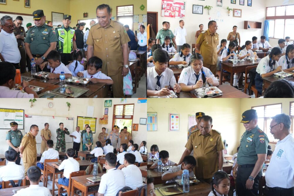 SINDOMAS, Jembrana – Bupati Jembrana I Nengah Tamba bersama Forkopimda Jembrana memantau langsung pendistribusian Program Makan Bergizi Gratis tahap awal, Senin (6/1/2025). Sebanyak tiga sekolah mendapat perhatian dari bupati beserta jajaran yaitu, SDN 1 Banjar Tengah, SDN 2 Kaliakah dan SMPN 2 Negara, yang seluruhnya berlokasi di Kecamatan Negara.