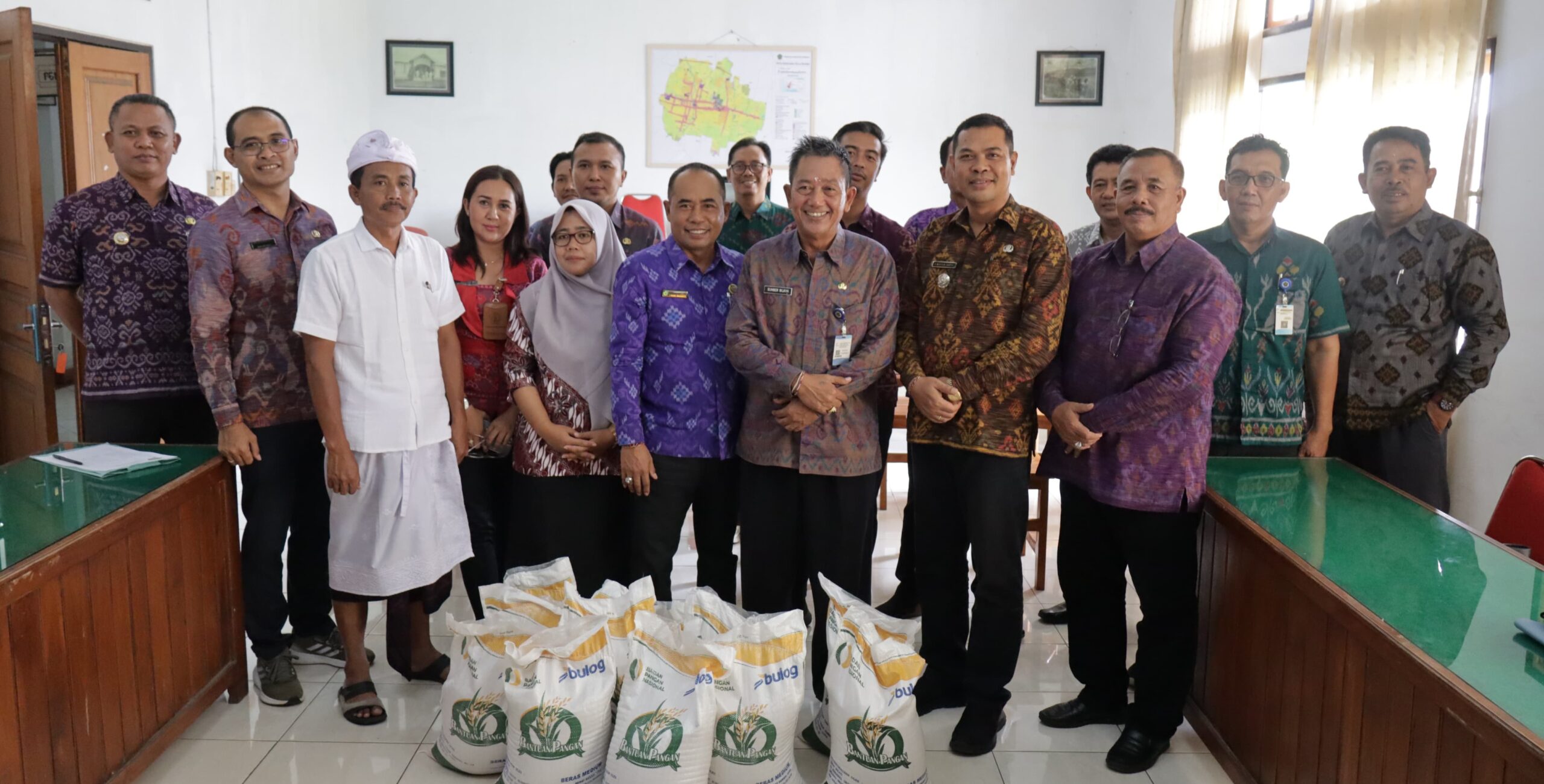 Pelaksanaan penyaluran bantuan beras CPP turut dihadiri perwakilan OPD di Lingkungan Pemkab Jembrana, Camat, serta para Perbekel. (Red)