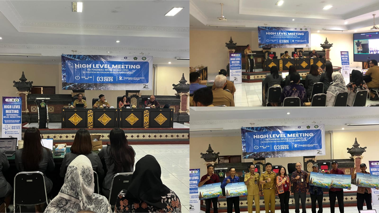 SINDOMAS, Jembrana – Wakil Bupati (Wabup) Jembrana I Gede Ngurah Patriana Krisna membuka High Level Meeting (HLM) Tim Pengendalian Inflasi Daerah (TPID) Kabupaten Jembrana, bertempat di Ruang Rapat Jimbarwana, Kantor Bupati Jembrana, Senin (3/11/2925). Kegiatan tersebut digelar untuk meningkatkan sinergi kolaborasi pengendalian harga dan stok ketersediaan bahan pangan menjelang Hari Raya Galungan dan Kuningan serta Natal dan Tahun Baru.
